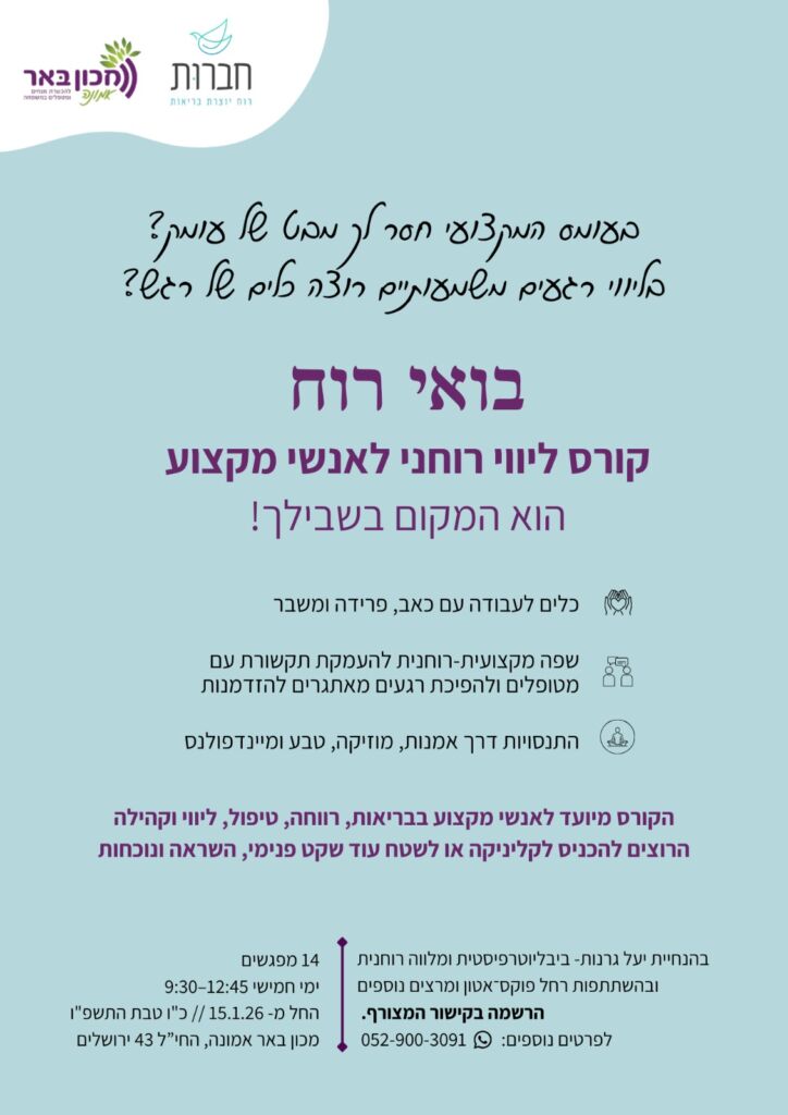 חברוּת פועלת למען רפואה שלמה וחברה בריאה באמצעות שפת הרוח, היצירה והקשר האנושי